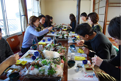 帰路、真鶴を過ぎた小さな漁港 江之浦にある磯料理店で磯づくしの昼食です。
